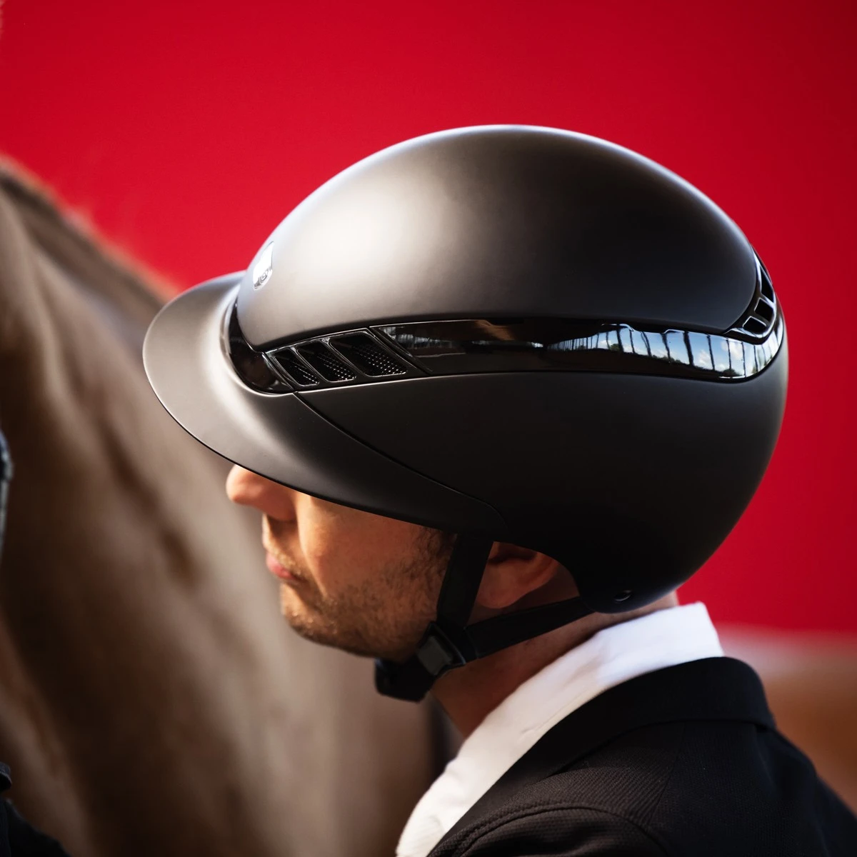Ventilation is a crucial requirement in equestrian sports; no-one wants to take off their riding hat to reveal damp, sweaty hair! To avoid this Abus have equipped the AirLuxe with carefully placed internal flow channels which direct the air outwards in a very targeted manner, thus optimising air circulation. There are 4 main channels at the front of the hat, and 17 ventilation openings in total to keep your head feeling fresh, cool and comfortable.