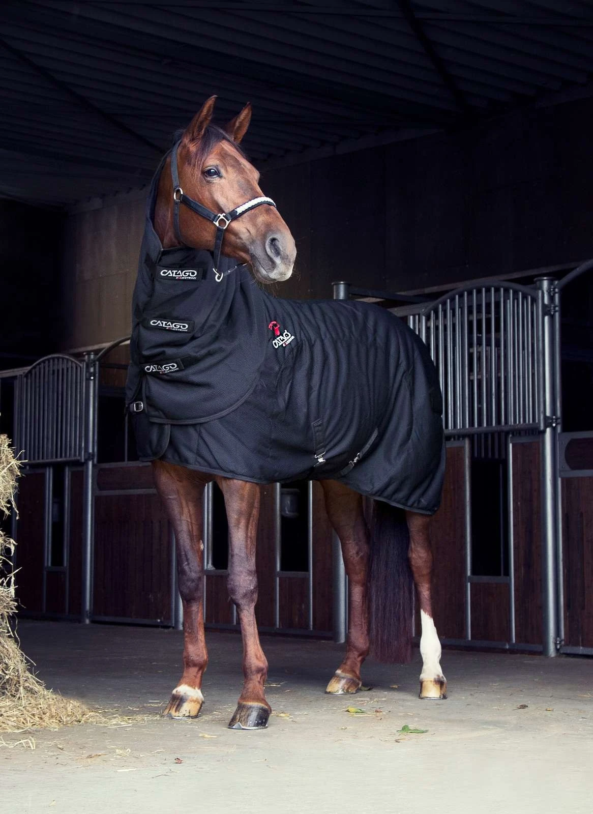 The neck has ceramic particles which increase the blood circulation in the horses neck muscles. The neck;piece is opened with velcro, and is mounted onto the rug with a snap hook in an elastic strap.