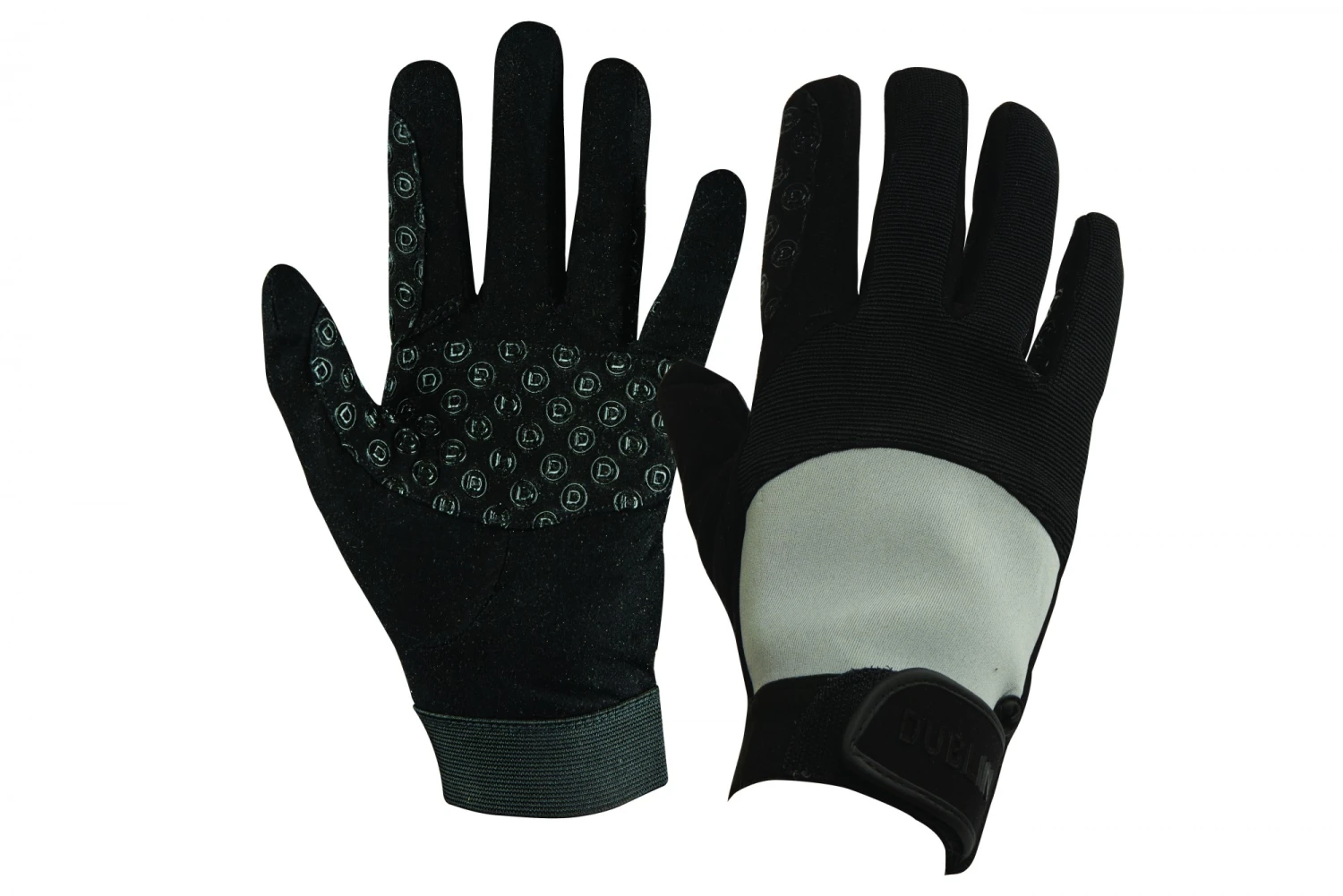 Dublin Cross Country Riding feature strategically placed D logo silicone print on the inner palm and fingers to provide grip where needed, elastic wrist and touch tape closure, neoprene on the back of the hand and stretch panels in the knuckles for additional stretch and comfort.