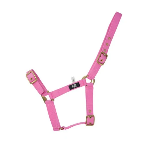 A strong and practical everyday head collar. Fully adjustable three buckle webbing head collar with brass fittings.